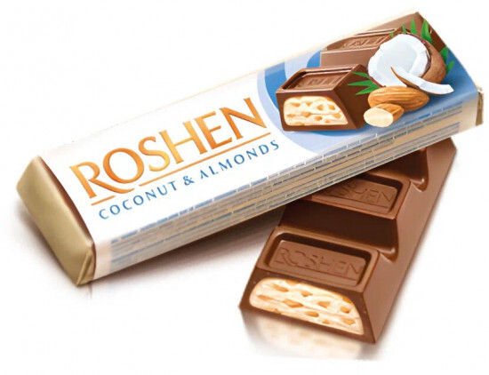 Roshen бадам және кокос толтырмасы бар сүтті шоколады 38г 1/30